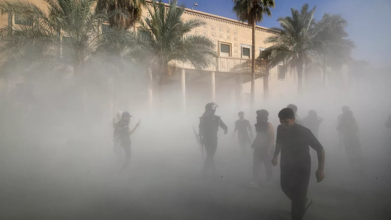 وتداول ناشطون على مواقع التواصل الاجتماعي فيديو لقوات الأمن العراقية وهي تدخل القصر الجمهوري في المنطقة الخضراء بعد خروج المتظاهرين.